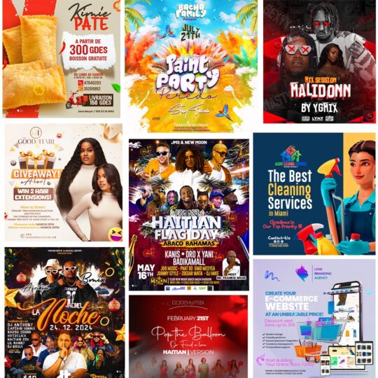 Nous créons des visuels percutants et sur mesure pour donner vie à votre image de marque : logos, flyers, affiches, cartes de visite, bannières et contenus digitaux.